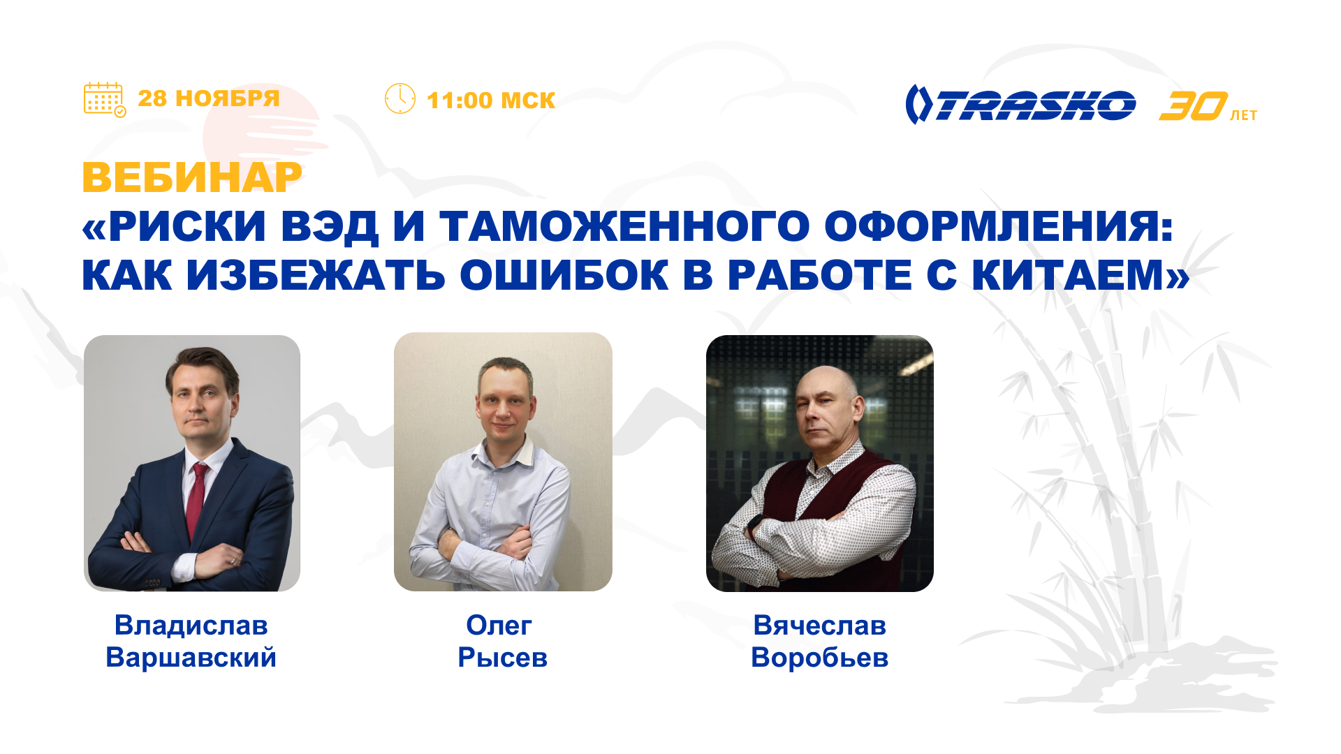 Второй вебинар из цикла состоится 28 ноября в 11:00 (мск) и раскроет тему: "Риски ВЭД и таможенного оформления: как избежать ошибок в работе с Китаем".